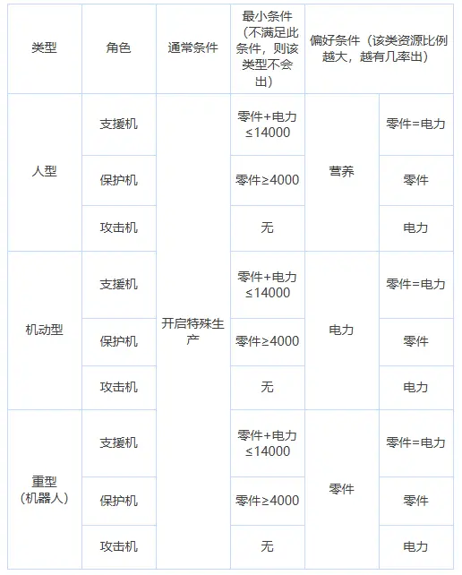 当然,上述公式对大部分玩家来说并非最优制造计划,因为有些制造公式资源投入与对应类型制造几率的提升并不成正比。例如:若想制造轻装攻击机(轻装攻击是最毒的池子,没事真别赌),