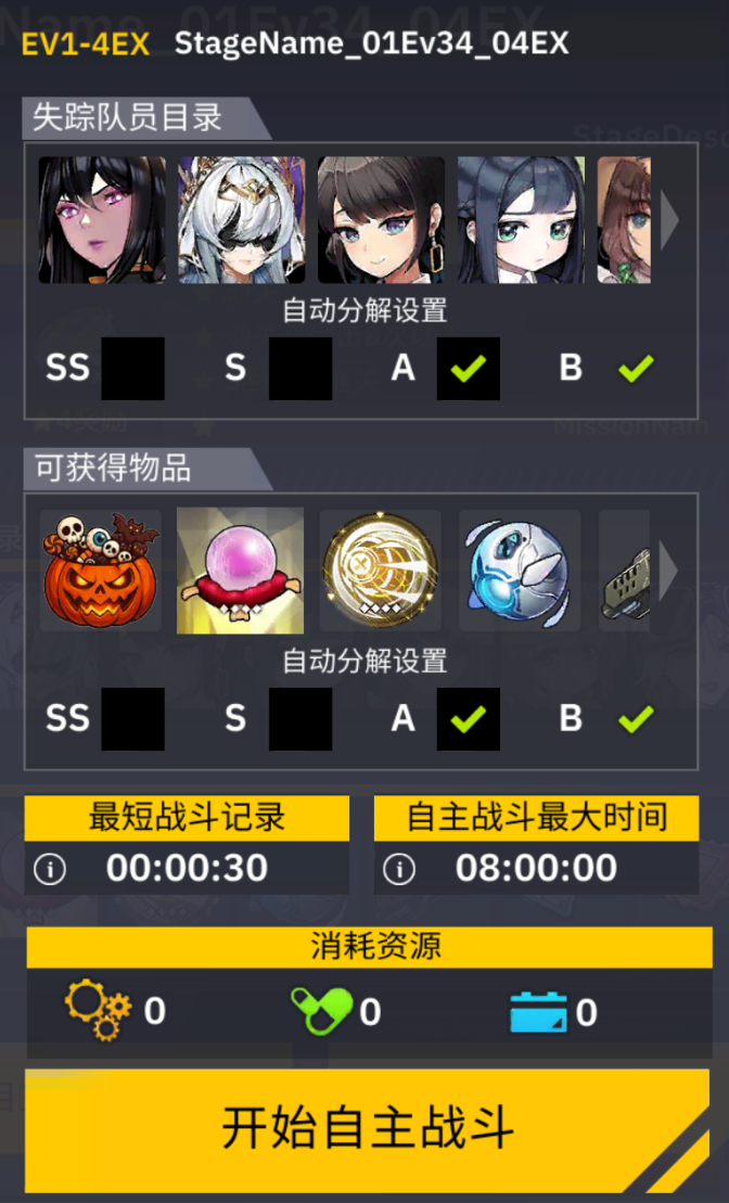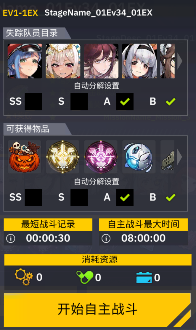 普通图除1-8外,修女队自动满星+30秒。