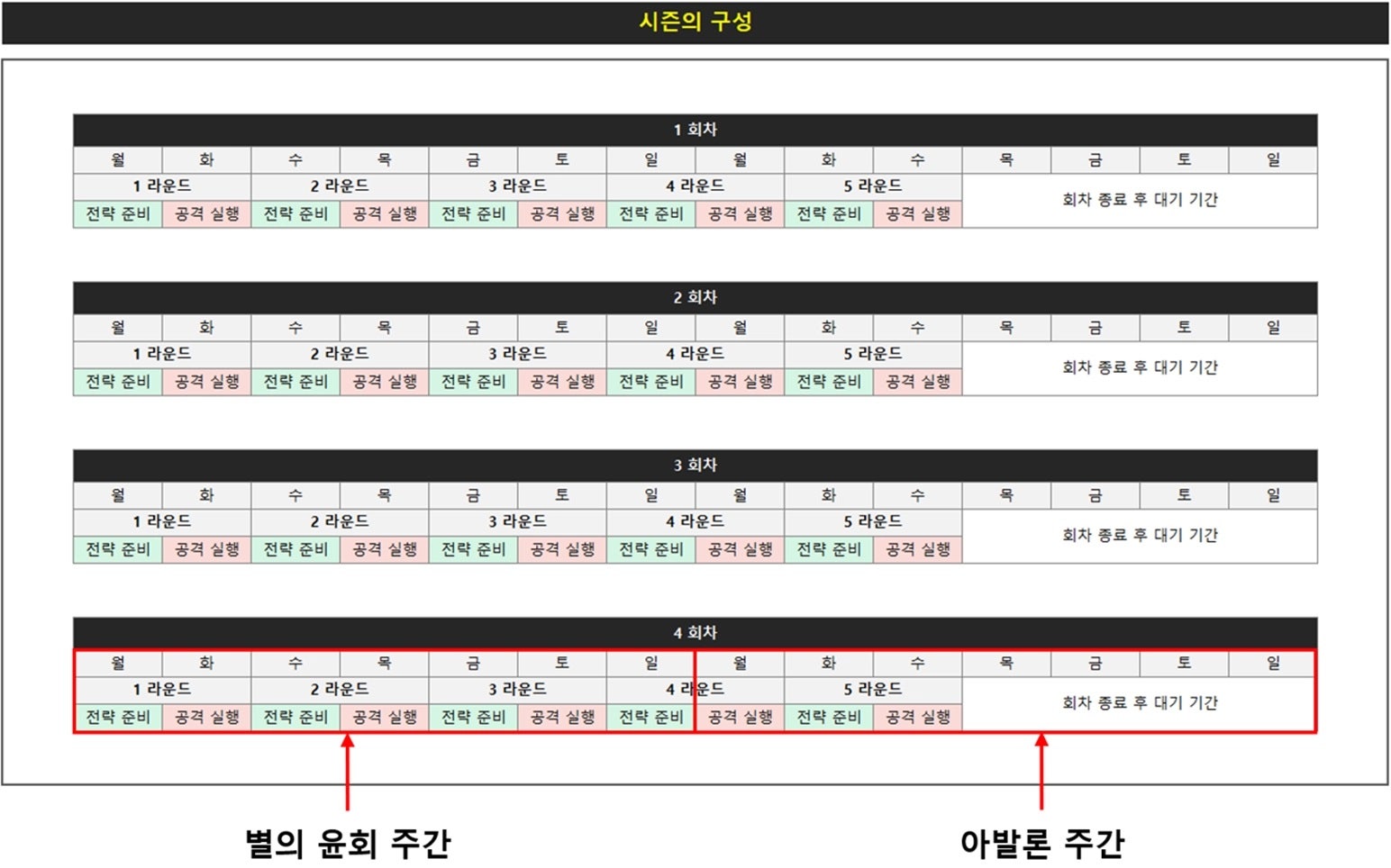 每个赛季分 4 个阶段进行,每个阶段持续 10 天。