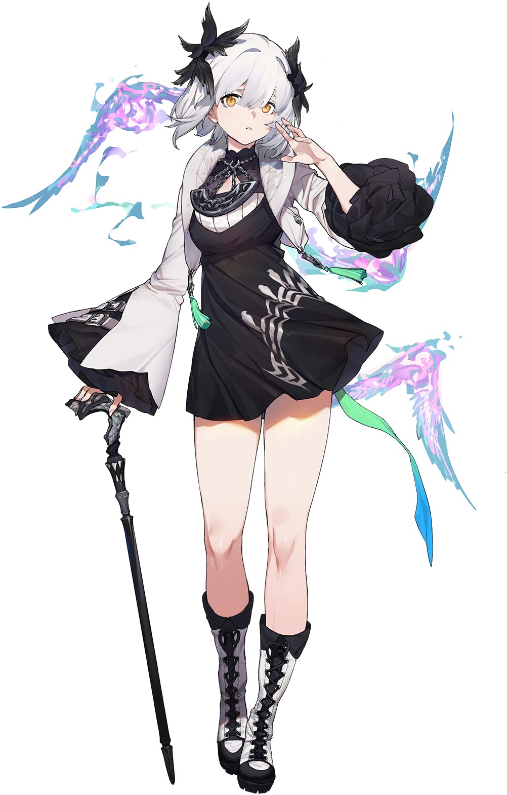 - 挥舞手杖剑,对敌方目标造成1段伤害,同时触发【变萌】和【混乱】