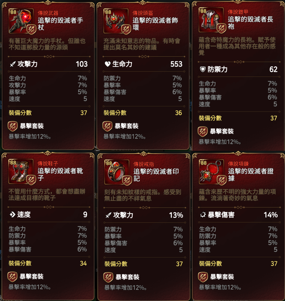- 購買「追擊的毀滅者」系列裝備時,附加屬性及數值為固定的。