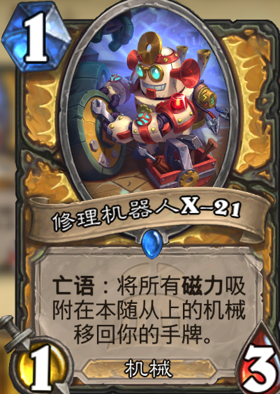 广语:将所有磁力吸附在本随从上的机械移回你的手牌。