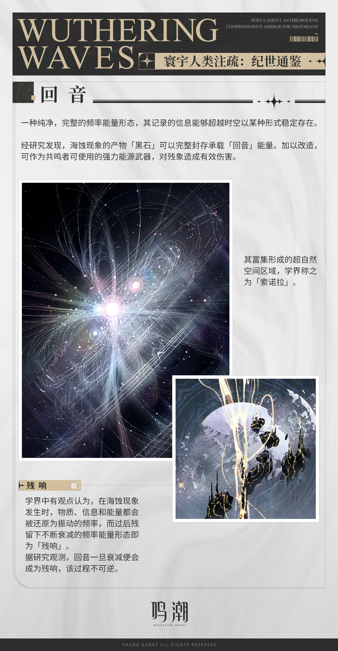 而你,在这个世界苏醒的漂泊者,将在找回记忆、寻找自我身份的同时结识无数的共鸣者同伴,并和伙伴一起踏上跨越悲鸣的旅途。