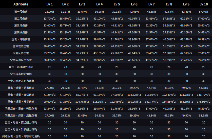 【战势】满时,闪避反击替换为闪避反击·重击·鸣铁,造成导电伤害。