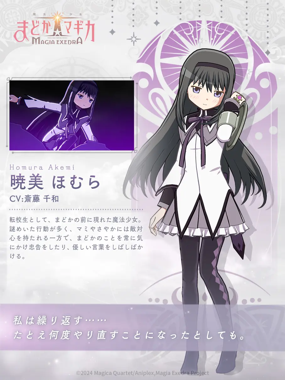 神秘转校生,经常在鹿目圆身边出现的魔法少女。行动成谜,对温柔的麻美学姐抱有敌意,非常关心鹿目圆的事情,常给予鹿目圆忠告与关怀的话语。