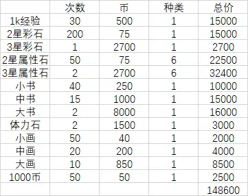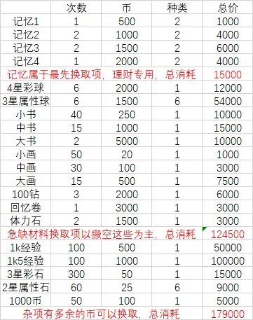 根据该表可以得出,不兑换记忆我们需要124500的币才能获取完整。