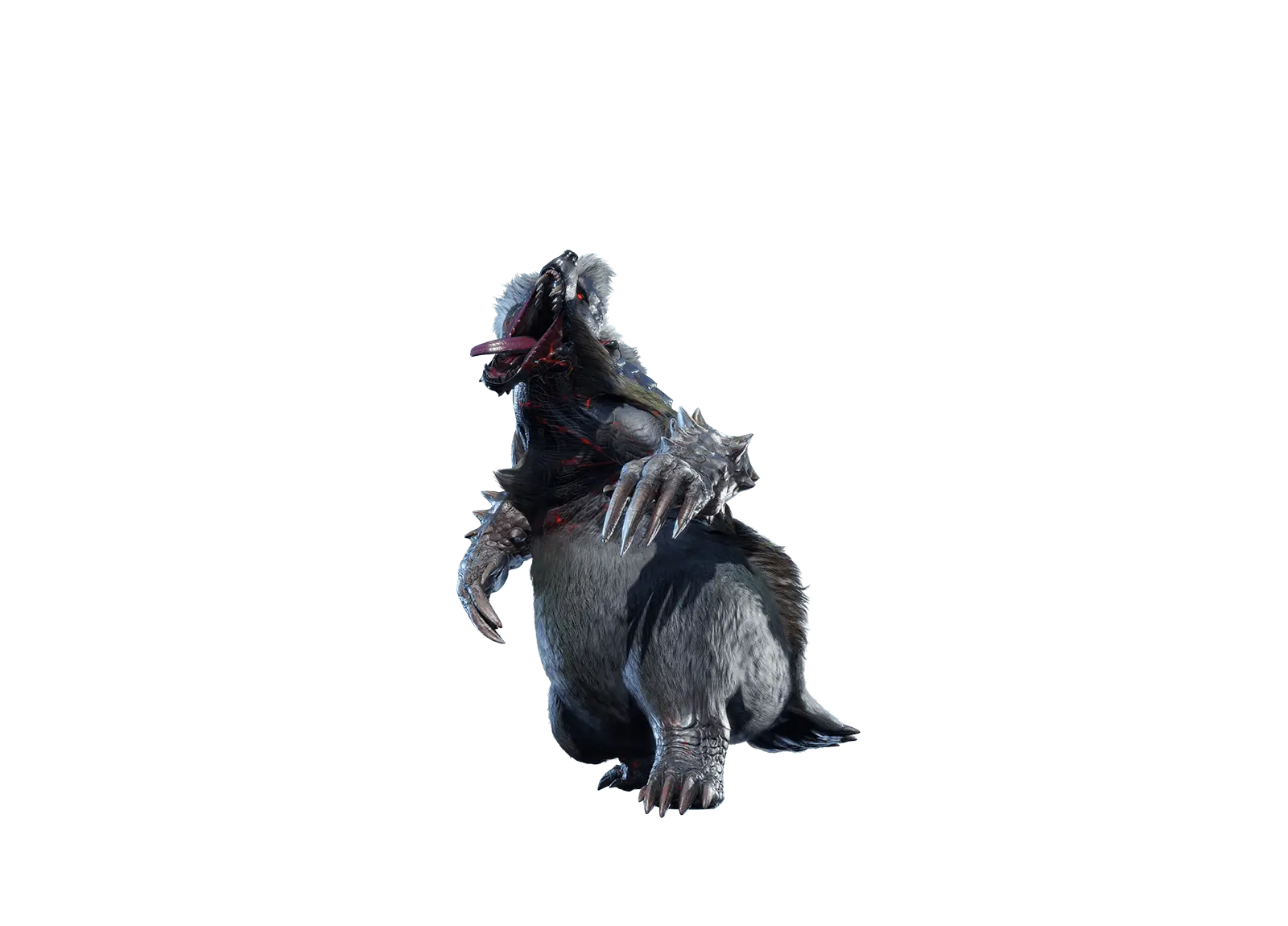 冠有“霸主”之名的青熊兽。全身布满仿佛曾被风暴席卷的可怕伤痕,或是受其影响,时刻都充满愤怒与恐惧。前腿远比普通个体更为发达,阻挡前路者,将沦为其无双怪力的食粮。此外,咆哮会将自身的愤怒与恐惧向周围散播,使怪物们更加活跃。 | |||||||||