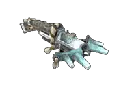 栖息于冰雪地带的怪物,人称“雪鬼兽”。身上覆盖着高密度的毛,足以耐受严酷环境,为寻找猎物而在雪原上不断徘徊。通过吸入冷气来冷却积蓄的体液,再一口气将之吐出以生成冰刃,作为武器使用。兴奋时全身会发红,务必要小心此状态下的雪鬼兽。 | |||||||||