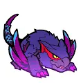 擅长龙属性攻击的迅龙属性变异个体。其体色相比普通种更偏暗紫,耐性和行动模式也与常规个体存在显著差异。由于与狱狼龙的目击信息多有重合,因此被认为是通过以削弱对方战力为目的,对蚀龙虫进行捕食行为,从而获得了龙属性能量。在尾棘和刃翼上,龙属性能量的影响尤为明显,虽然这是后天获得的能力,但在战斗时能巧妙地运用这种力量,展现出将猎物逼入绝境的姿态。 | |||||||||