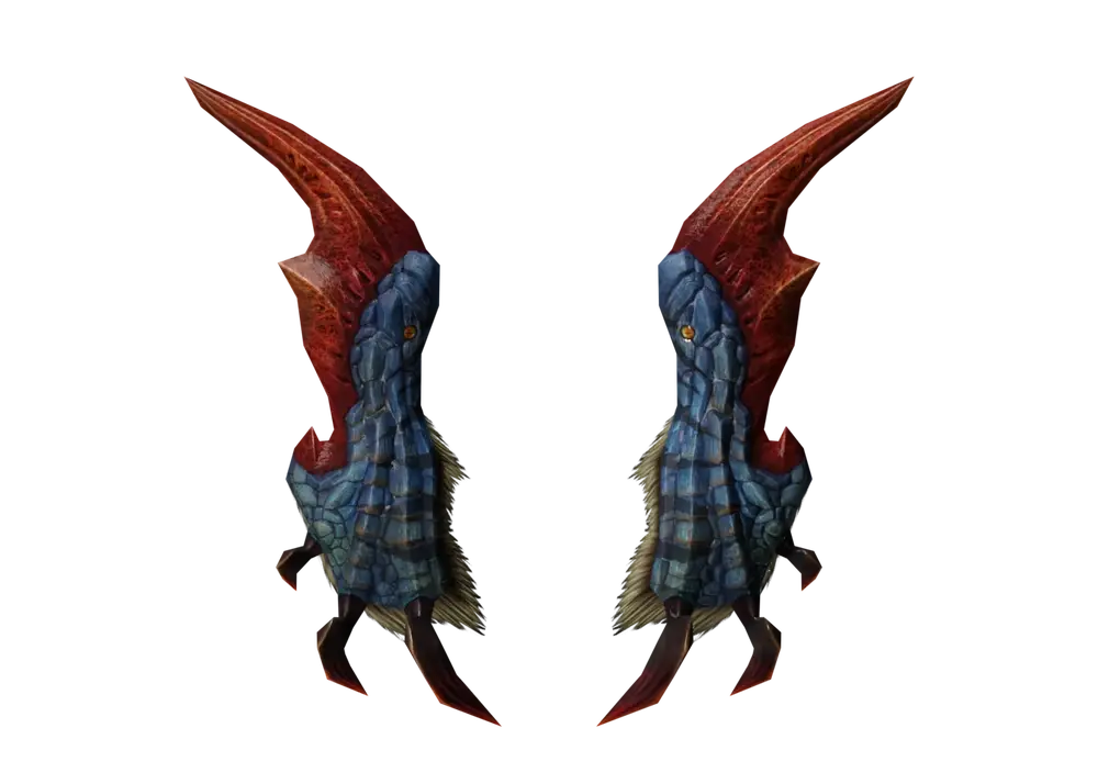 集体行动的蓝速龙的首领。稍大的体型与巨大头冠是其特征。会率领群体四处巡视领地。能够凭借发达的后足一跃而起,扑向猎物,以利爪发动攻击。 | |||||||||