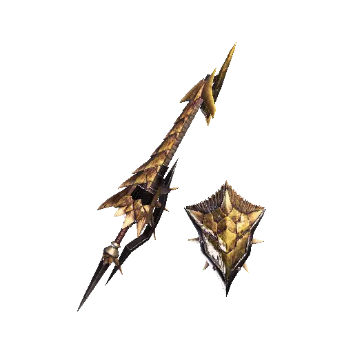 雌火龙的稀少种,身披金光灿灿的金色外壳。人称“金火龙”。因其姿态甚为庄严神圣,又被称为“黄金月亮”。其特征是用坚固的外壳和更强大的尾巴进攻,战斗力极高,十分危险。在战斗时,当其身体的一部分发出紫红光芒时,其攻击会变得更猛烈。这种状态被称为“劫炎状态”。 | |||||||||