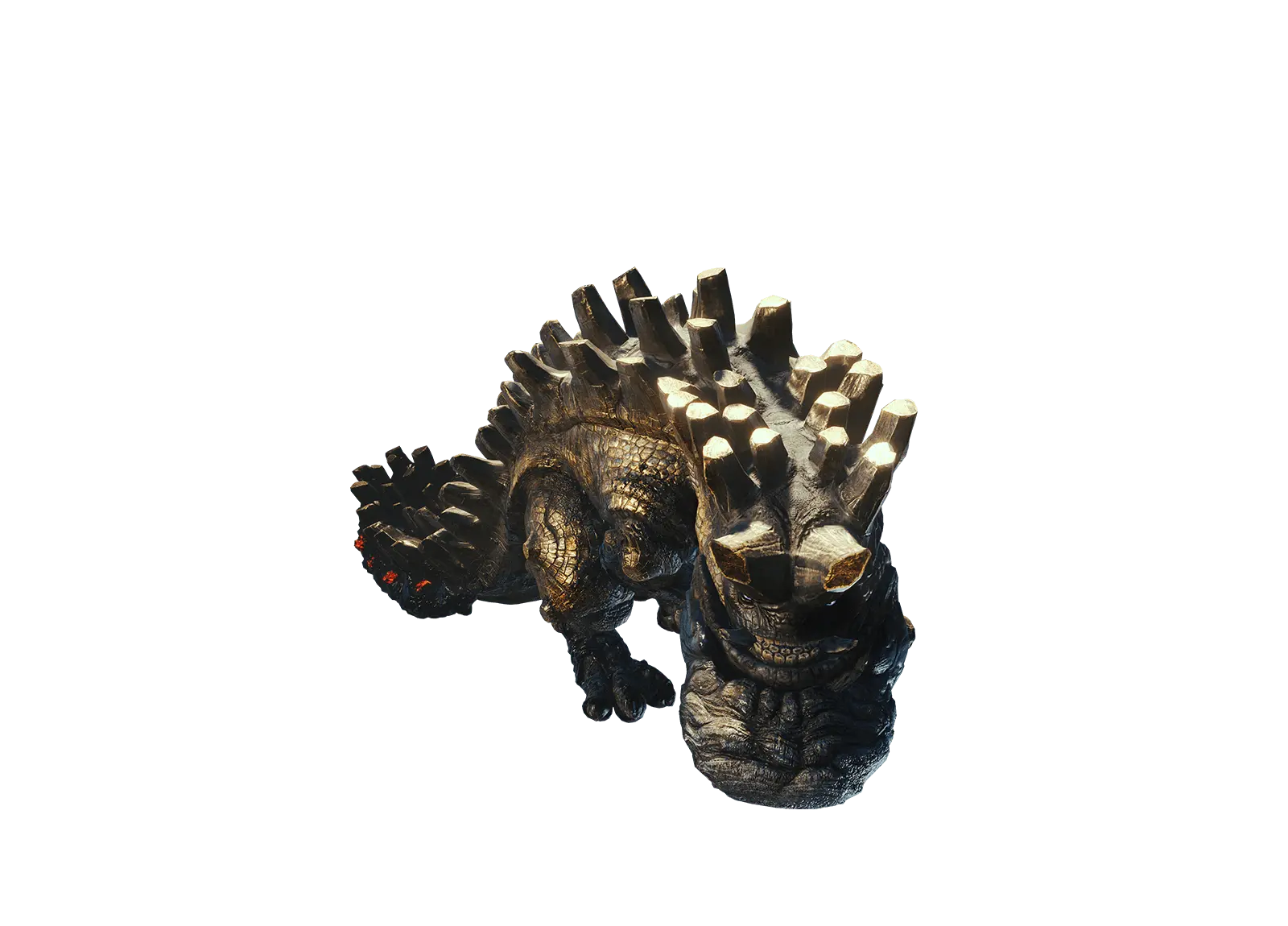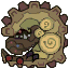用健硕下领粉碎一切事物的“爆锤龙”。播撒附着于巨大身体表面的岩石与矿石,自己振动以引发大爆炸。猛力挥下的下领会连周围的火药岩一并引爆。 | |||||||||