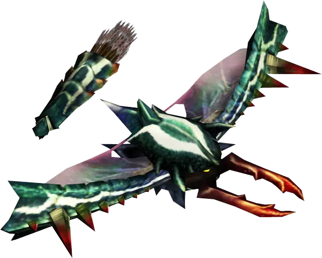 被称为“重甲虫”的大型甲虫种怪物。翅膀已经退化,无法独立飞行。与“穿甲虫”互为雌雄关系。通过散发荷尔蒙来使唤雄性,虽然拥有坚硬的甲壳,但其腹部,特别是口腔内部的硬度很低,平时均靠甲壳进行保护。在吐粘液时,偶尔会打开其甲壳。 | |||||||||