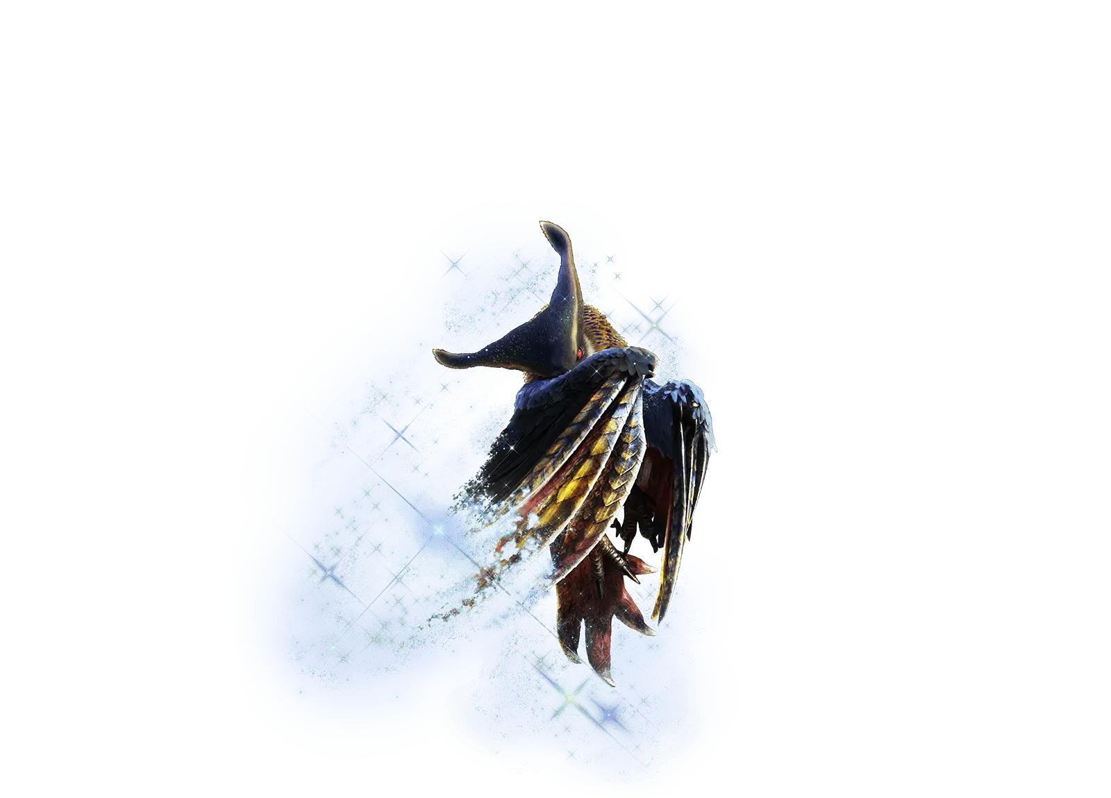 获得"胧隐"这一别称的夜鸟。有着黄昏之色的巨大羽翼,据说其通过使用特殊的鳞粉,产生光折射,使自身的身影消失于猎物眼前,让毫无防备的敌人深陷恐惧。 | |||||||||