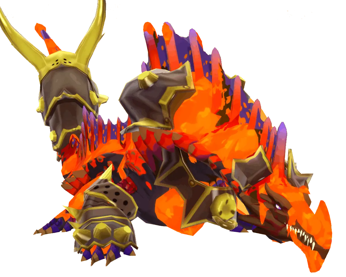 将改造的牵绊石嵌入炎戈龙而成。由于受到黑色凶气的侵袭,具有龙属性的力量。 | |||||||||