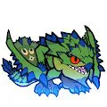 擅长水属性攻击的雌火龙属性变异个体。其体色相比普通种更偏水蓝,耐性和行动模式也与常规个体存在显著差异。它能使用强力的水之吐息,翻转时的尾巴攻击也带有水属性。与之对峙时,不要被其外表所迷惑,需要将其当作水属性怪物来应对,栖息地和火龙【豪水】相同。 | |||||||||