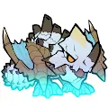 擅长冰属性攻击的铠龙属性变异个体。其体色相比普通种更偏青蓝,耐性和行动模式也与常规个体存在显著差异。它能够吐出超低温的气息,能在瞬间冻结一切事物。即使躲过了气息的直接攻击,由于周围气温会立刻下降到冰点以下,也会失去行动自由。由于平时潜藏于地下伪装成岩石,目击信息极少。 | |||||||||