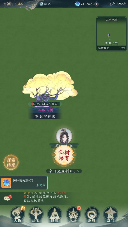 这是一个休闲玩法,您可以通过种植不同的仙树并给他们浇水,收获后可以获得大量稀有奖励