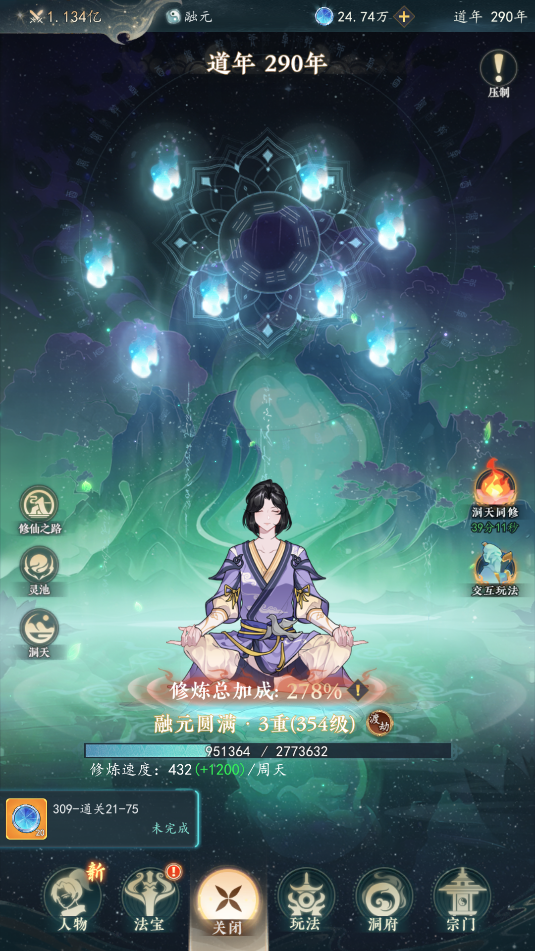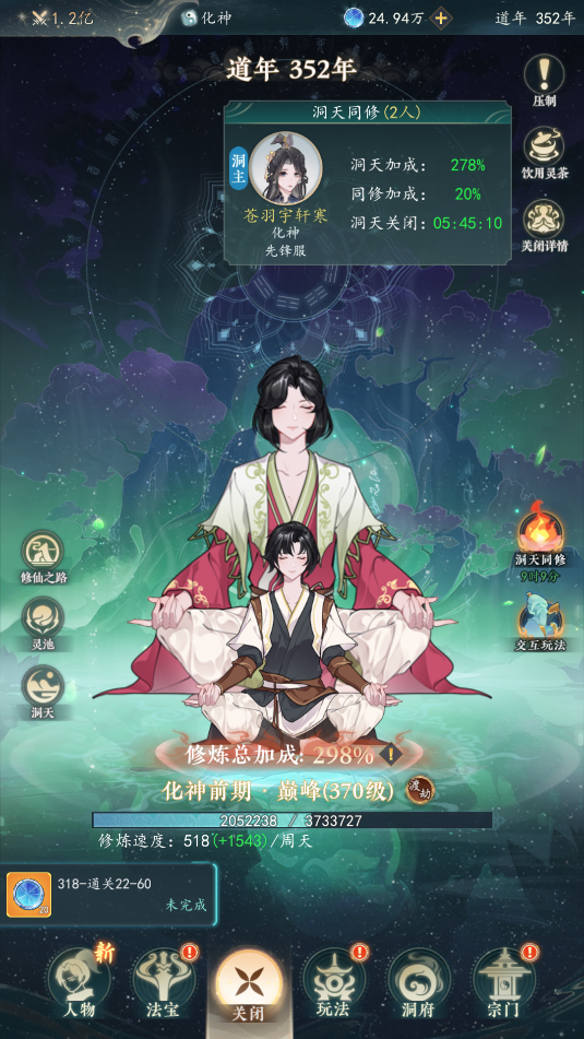 您可以创建自己的洞府并邀请仙友一同前来修炼,洞府同修会获得额外的修炼加成,更快的提升境界