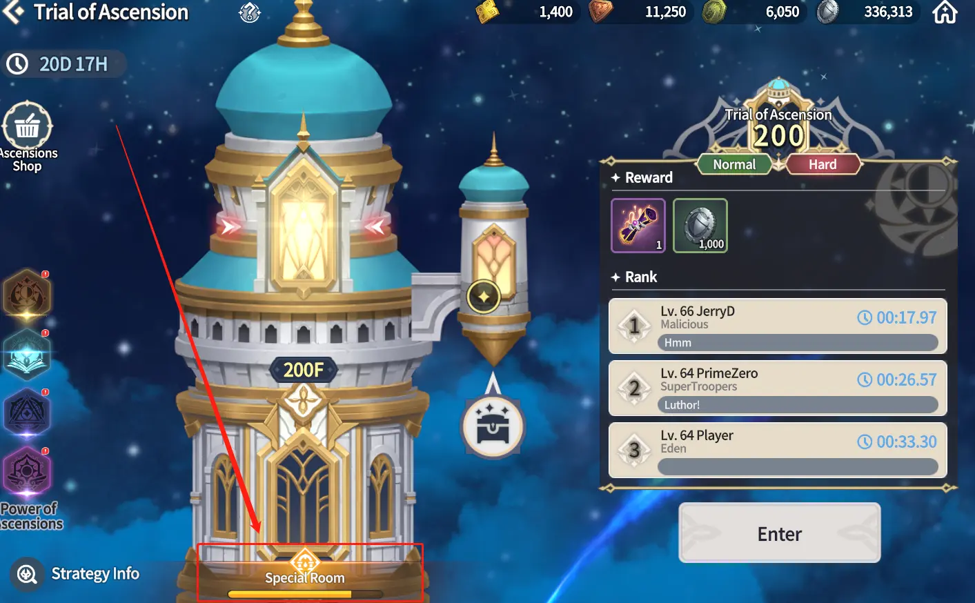 特殊房间每打十层新通关的塔就可以进入一次,且不会叠加,所以一定要及时进入(属性塔、天空塔等层数都计算在内)