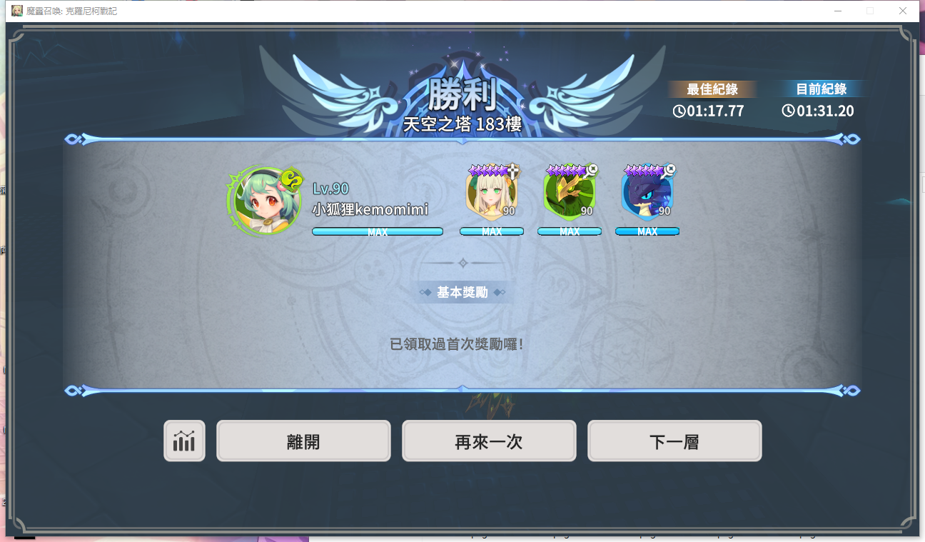 到此为止,我们的天空塔攻略就结束了,整理这份攻略花了我三天时间,过程非常痛苦!因为每层都需要测不止一遍,筛选出最简单的阵容,这里也是由衷的希望能帮到大家,也希望各位可以多多支持!