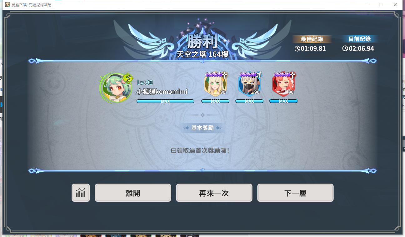 ,接下来就是跟162层一样,优先击杀光仙人,利用法师风武器1技能和大招无视对峙效果直接击杀剩下的怪。