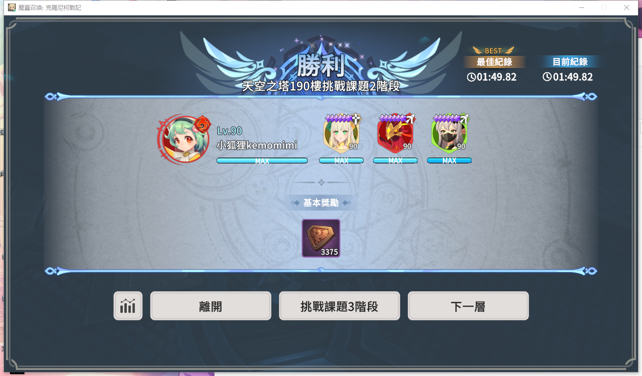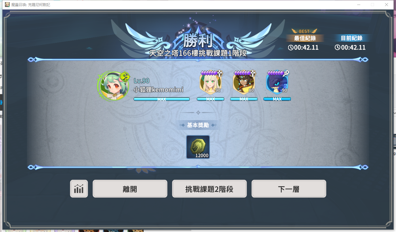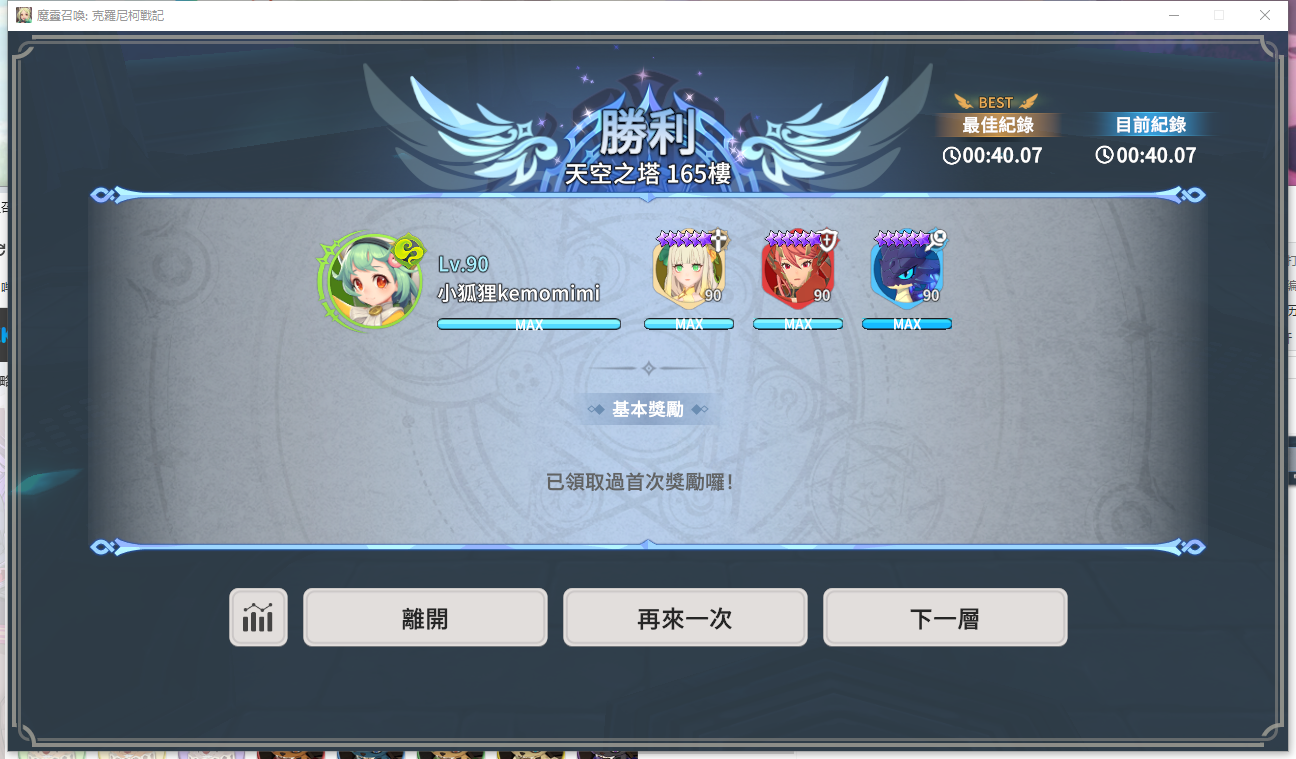 165 | ![]() | 165的怪物都是使用大量的dot造成伤害的,因此选择光基地配合风奶妈本体加解除弱化效果的魔灵来保证队伍身上没有debuff |