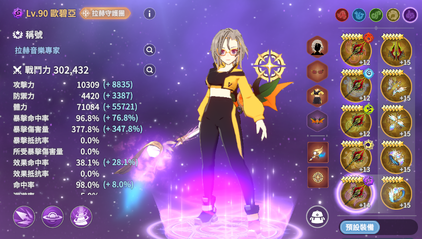 然后这是我法师本体的面板,不需要和我一样的面板,经测试攻击7.5k左右就足够了,但爆伤要尽量满。