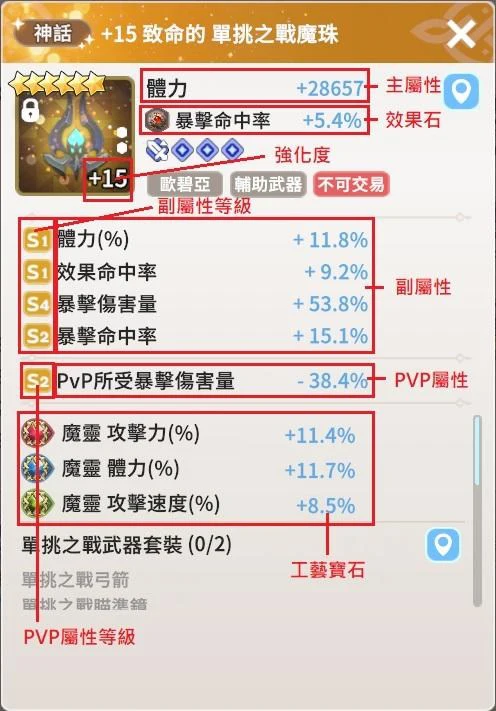 註 : PvP屬性等級、PvP屬性為閃耀的神話武器/輔助武器獨有詞條,只套用於PvP。