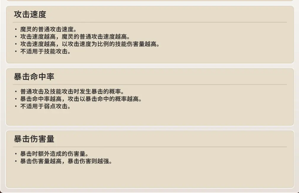 - 攻速魔灵的攻速伤害系数上限为300,但是魔灵实际攻击间隔会根据超过300的攻速进一步减少。