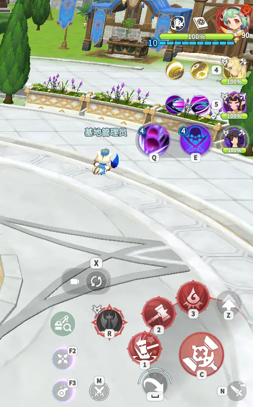 F2处是瞄准召唤师攻击目标,M为自动战斗,123分别为召唤师本体释放相应技能,QE为释放灵魂链魔灵技能,终极技能条满时R为释放本体大招及魔灵大招,F7为坐骑移动,战斗时上坐骑会读条,F8为调整视角(建议调自由),X为重置视角,其余常用按钮如图所示。