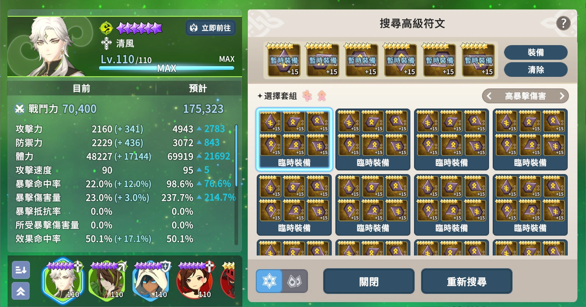 <人家好想打造暴擊命中率90%、暴擊傷害量200%以上的超強清風啊~😍>