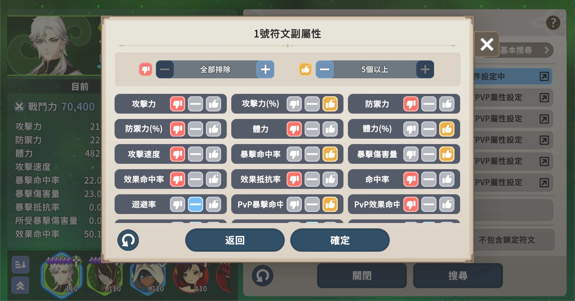 除了手動逐一設定各屬性之外,還可透過直接輸入目標能力值區間並進行搜尋的方式!