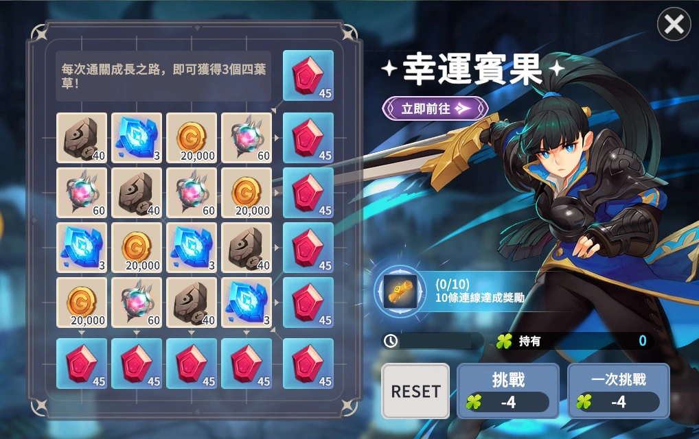 - 內容 : 通關[成長之路],收集四葉草並入手活動獎勵!