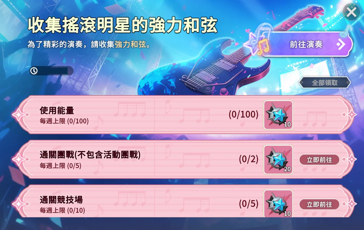 · 強力和弦可在<搖滾明星的舞台>活動中使用。