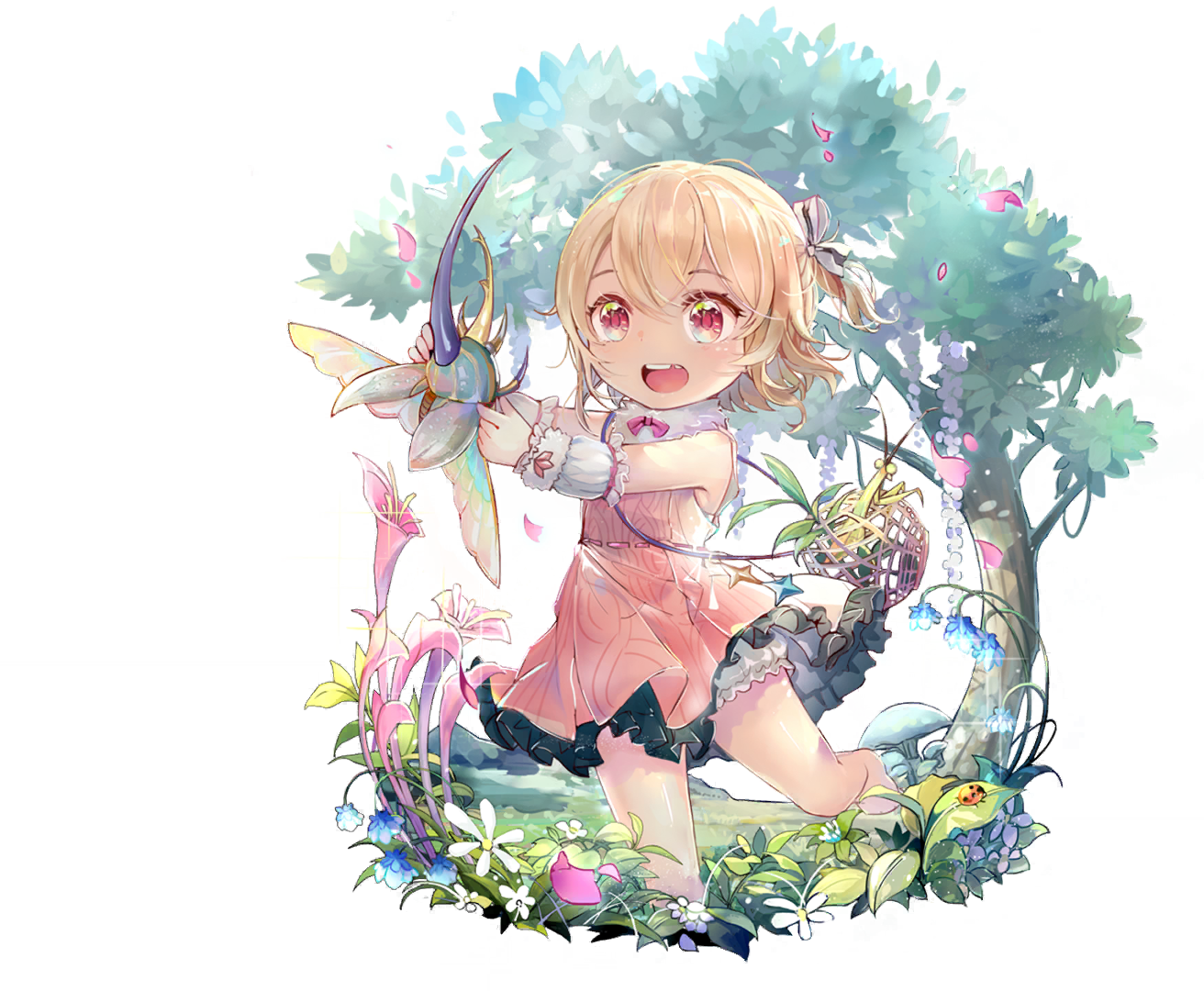 夏日的奎德拉森林,虫鸣和闷热的气息让人无法平静下来。 但小米尔德里德似乎并不在意这些,此刻她的眼中只有草丛前的猎物。赤足踏在草地上,耐心地等待昆虫们放下警惕。然后—―真正的勇气就是徒手捉虫! 虽然本人似乎并不想提起往事。 | ||||