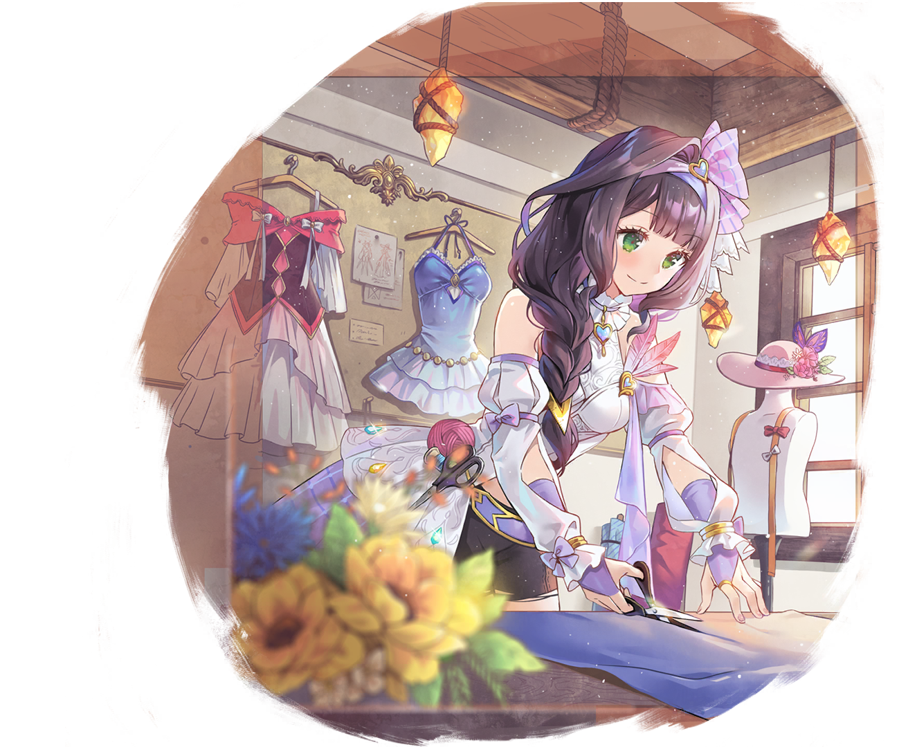 从纸样、裁剪、车缝、到洗水、成衣染,奥捷塔对这些步骤早已熟记于心。和在店门口哭哭啼啼的样子不同,埋头工作的奥捷塔熟练地将布匹分类裁剪开,一 边嘟囔着“嗯,得想个办法送给他才行”虽然奥捷塔的哭脸也很可爱,愿泉之女神保佑她的店铺可不要再被遗灾波及了。 | ||||