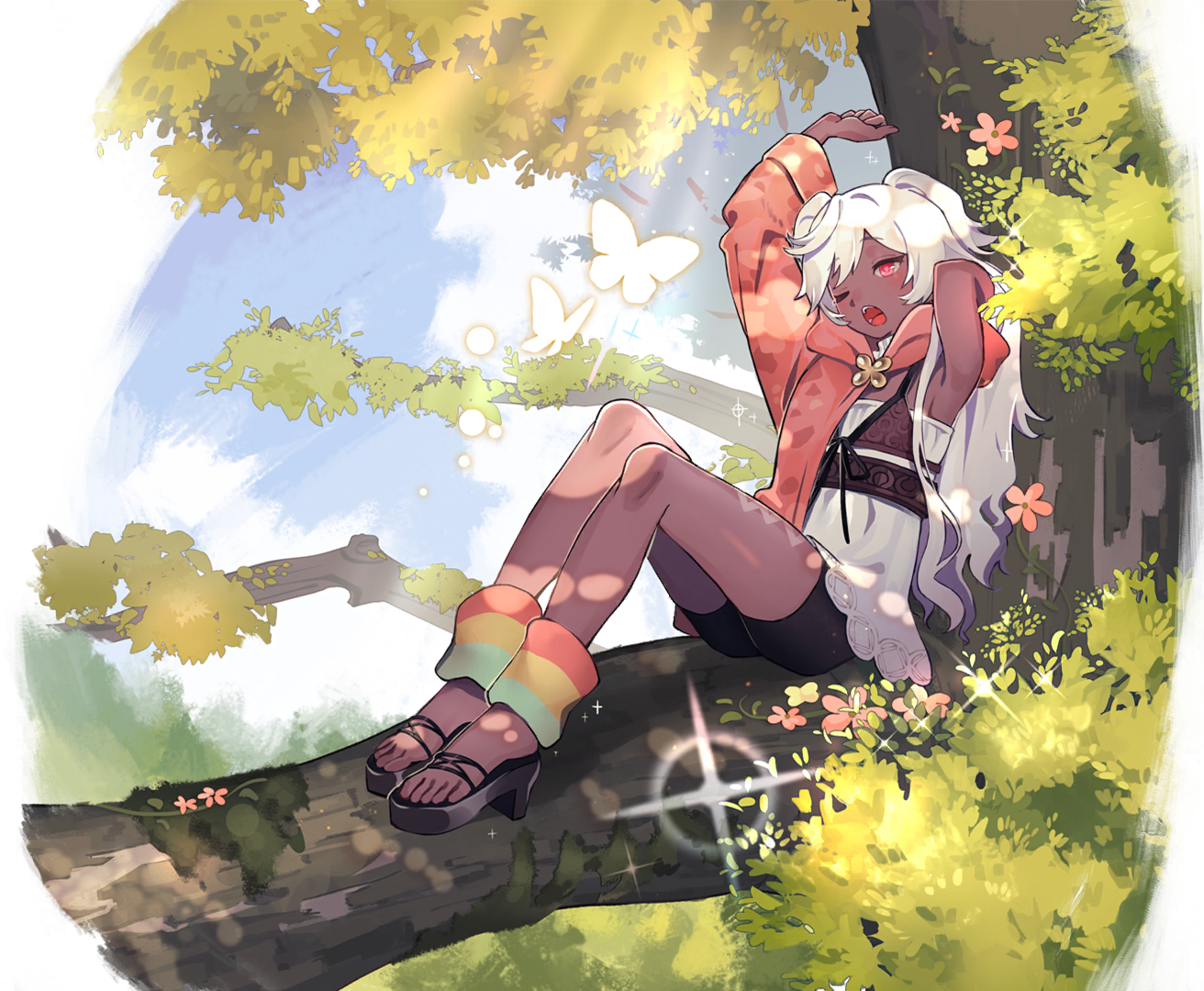 法露露又又又又不见了?午休时间,法露露通常会避开人悄悄跑到精灵树上,找个不错的位置好好睡上一会。要不是看中了这棵巨大的精灵树,迷迷糊糊中被带到学院的法露露估计早就找机会溜会森林老家了。法露露靠在树干.上伸了个懒腰,在入睡前再一次努力回想入校前的遭遇 可是、哈,太困了...呼呼呼....精灵树的错误使用方法,请勿模仿。 | ||||