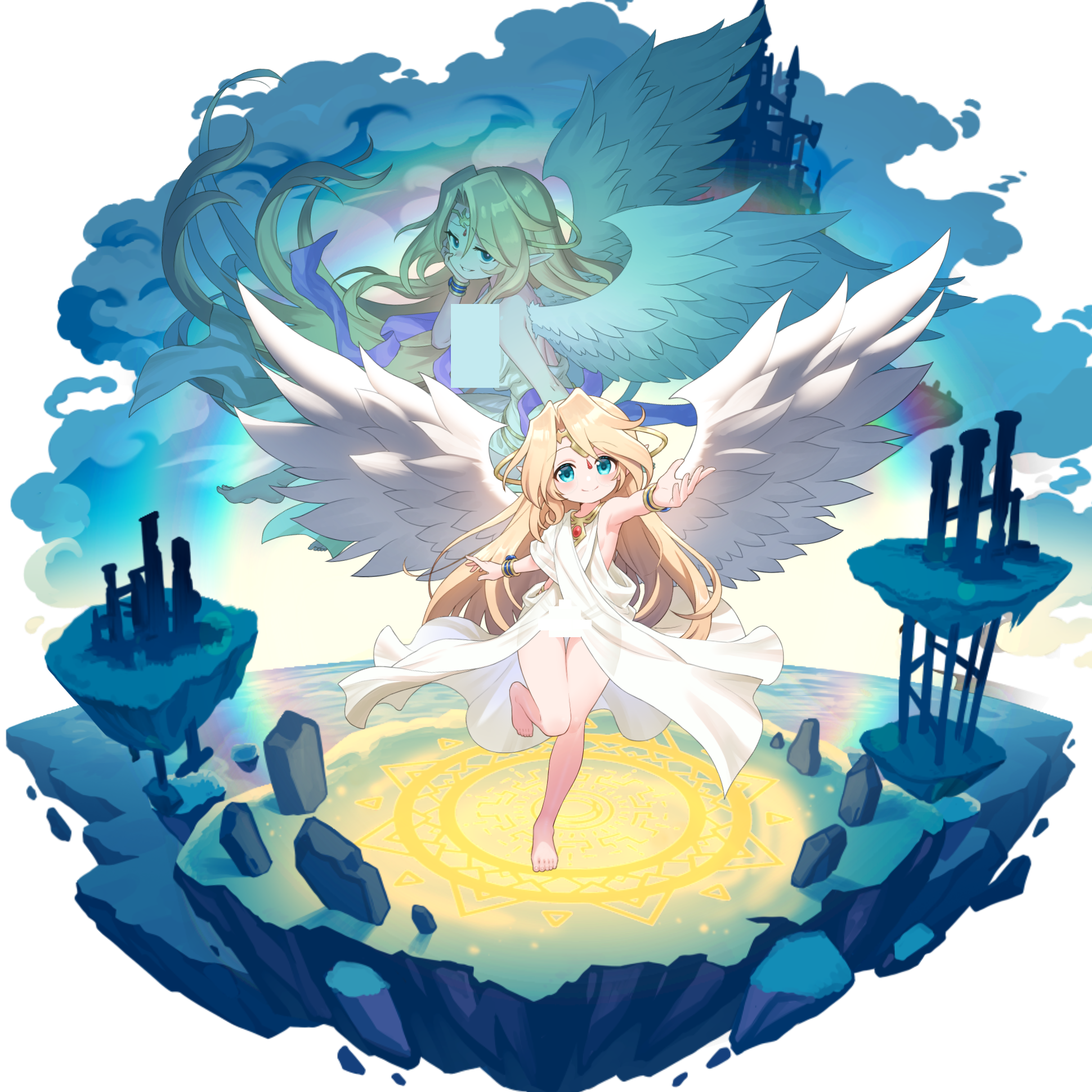 以飞行方式移动。 部署时,每秒以自身基础生命值的2%[+1%]恢复范围内我方单位的生命值。 每隔一段时间会对范围内的所有敌人降下神罚之雷,短时间内击晕他们(积蓄值:超特大)。 | 勇战魔!联动卡池 | |||||||