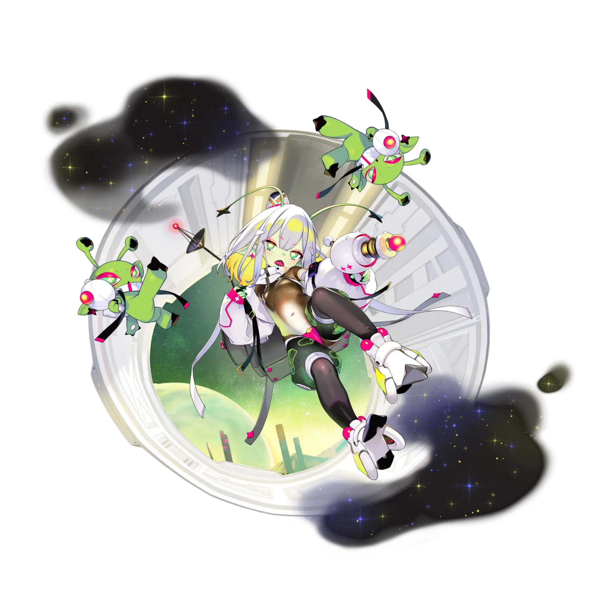 这个角色是外星人。攻击后摇-10%[-10%],攻击时会在5秒间降低敌人10%的移动速度。编队时,所有外星人的部署费用-1。 | 异星卡池限定 | |||||||