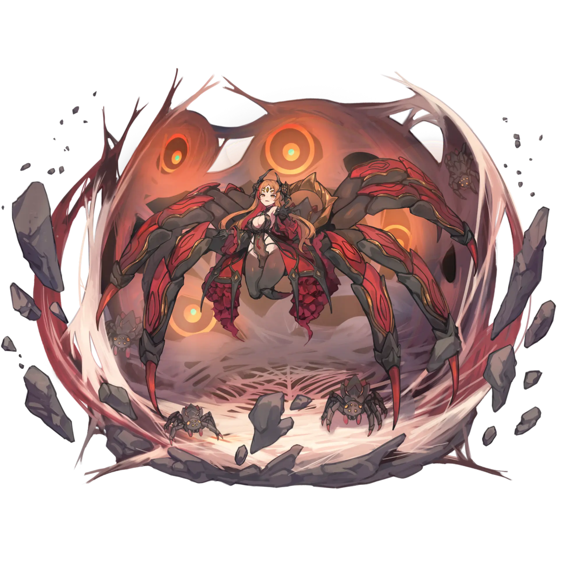 阿拉克涅娘进化成蜘蛛之神的样子。因为没有人把她当公主而烦恼, “既然如此,再加一点威严就好了!”这么一想,似乎真的觉醒为神了。 为了保持威严,在洞窟深处制作了巨大的蜘蛛网。 埋头工作忘记时间,被打扰就暴跳如雷。 随从蜘蛛们被称为“伟大的织布手”,但似乎根本没有帮助她筑巢。 由于进化为神,智慧也有所提升,所以不会像以前那样轻易被甜言蜜语所迷惑。 |