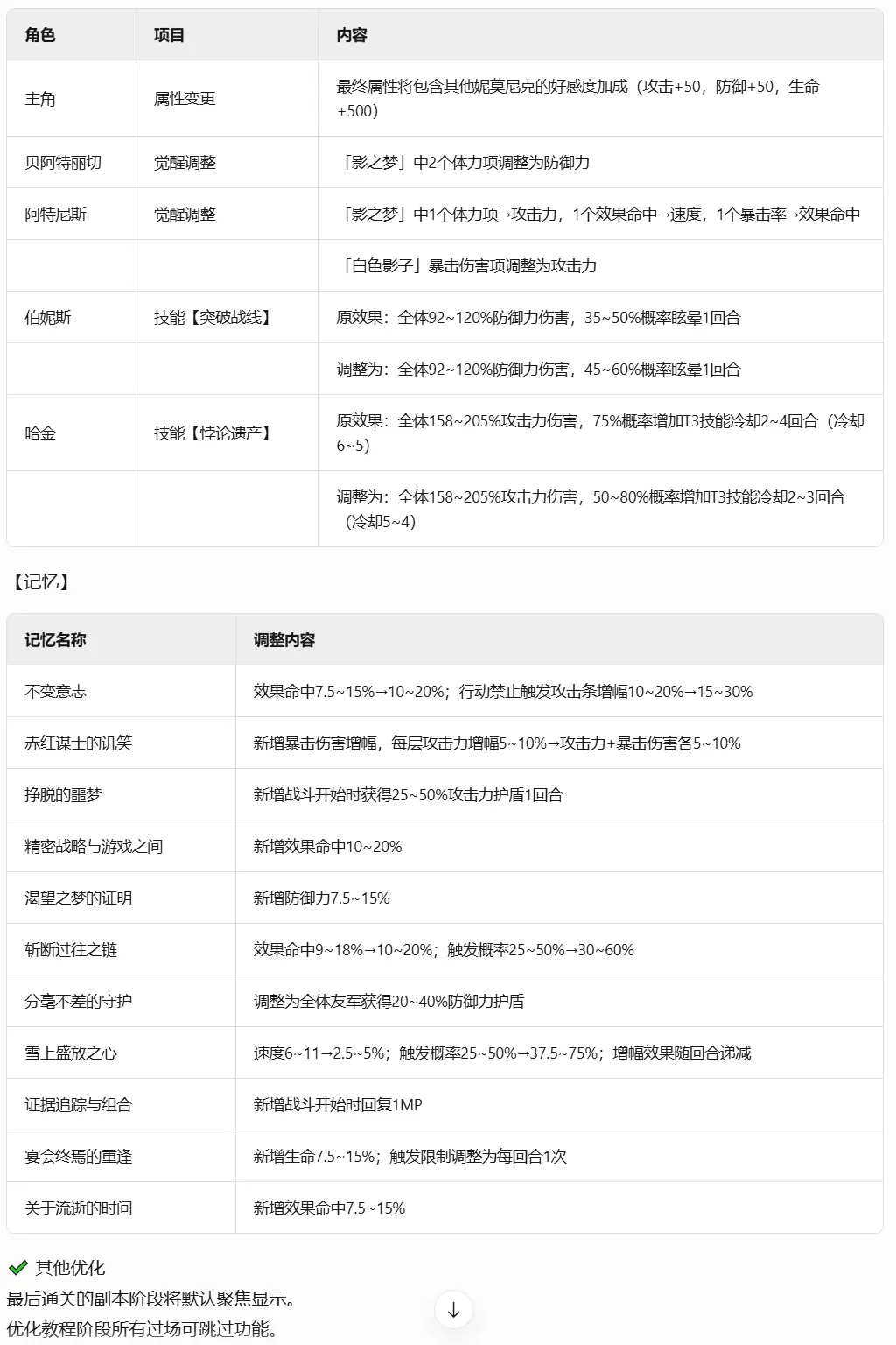 v1.3.0维护时将重置所有尼莫尼克的「影之梦」与「白色影子」。