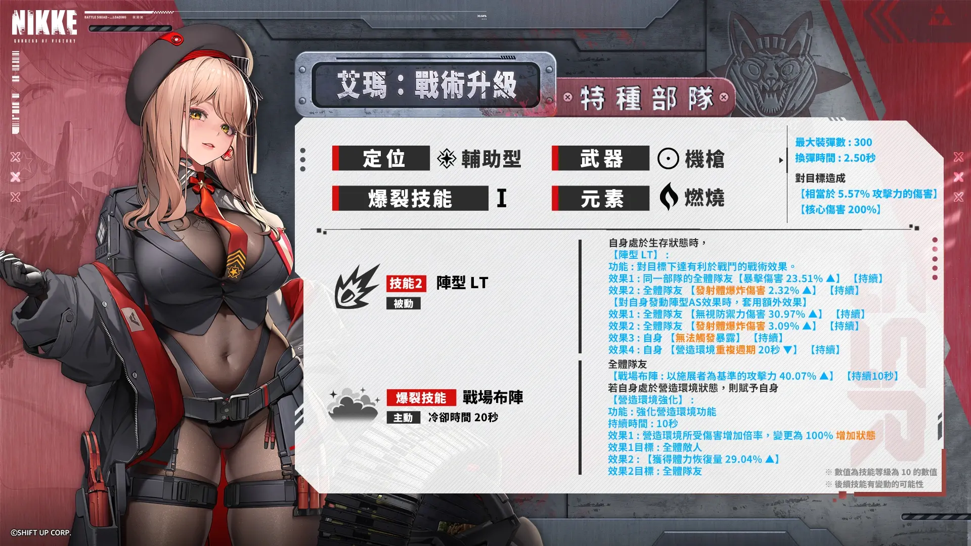 2技能提供爆伤和爆炸伤害,但是强调同部队并最好和银华:战术升级(阵型AS)一起上场