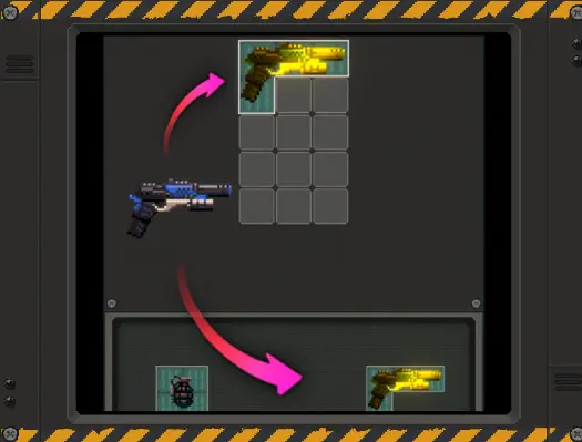 ![]() | 商店 ■波次结束后将开启商店。 ■商店分成物品栏区域和武器区域。 ■可在商店中整理物品栏,也可移除 不使用的武器。 ■可将武器区域的武器拖曳到物品栏中 进行配置。 ■可在战斗中使用配置在物品栏中的武器。 ■武器区域在商店开启时会出现新的武器: 并能暂时保管武器。 ■武器区域的武器在下个波次开始时会消失。 |