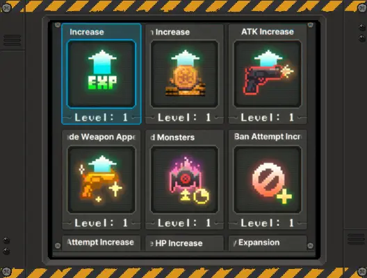 ![]() | 强化 ■消灭怪物并使用获得的金币,即可获得对角 色有益的技能。 ■通过重置按钮,可回收金币并将技能等级重置。 |