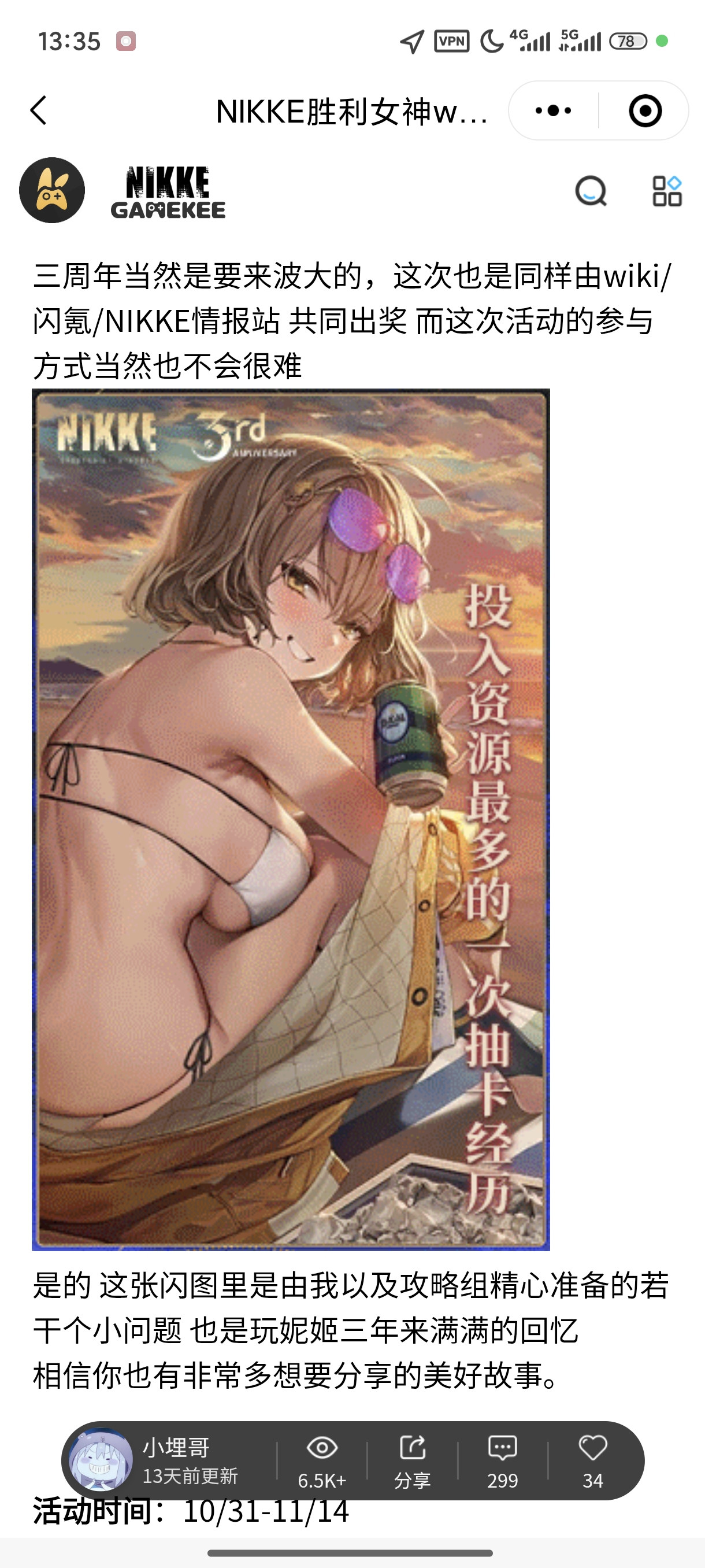 三周年当然是要来波大的,这次也是同样由wiki/闪氪/NIKKE情报站 共同出奖 而这次活动的参与方式当然也不会很难