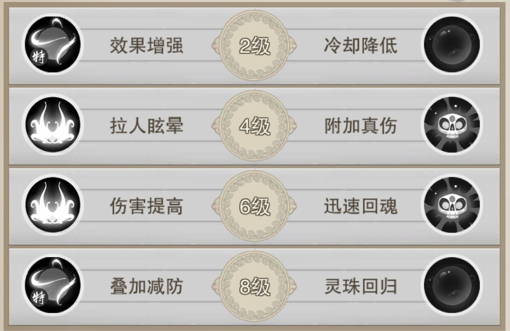 当白骨精遭受致死伤害时,如果白骨灵盾的能量超过50%,就会将所有能量转化为护盾,持续2秒,最多可获得相当于生命上限40%的护盾。