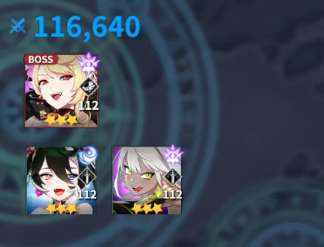 11.帕尔蒂+艾尔丽斯+蒂欧 限制:无法配置火属性、需要配置原始星级2星2名