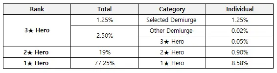 :之前的 Demiurge 英雄将被添加到 Demiurge 招募池中,并将被列为可能的 3 星招募对象,并且具有与其他 3 星英雄不同的招募机会。