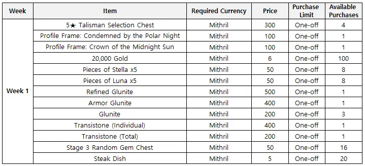 - 活动地下城由一个部分组成,活动商店将开放三周。